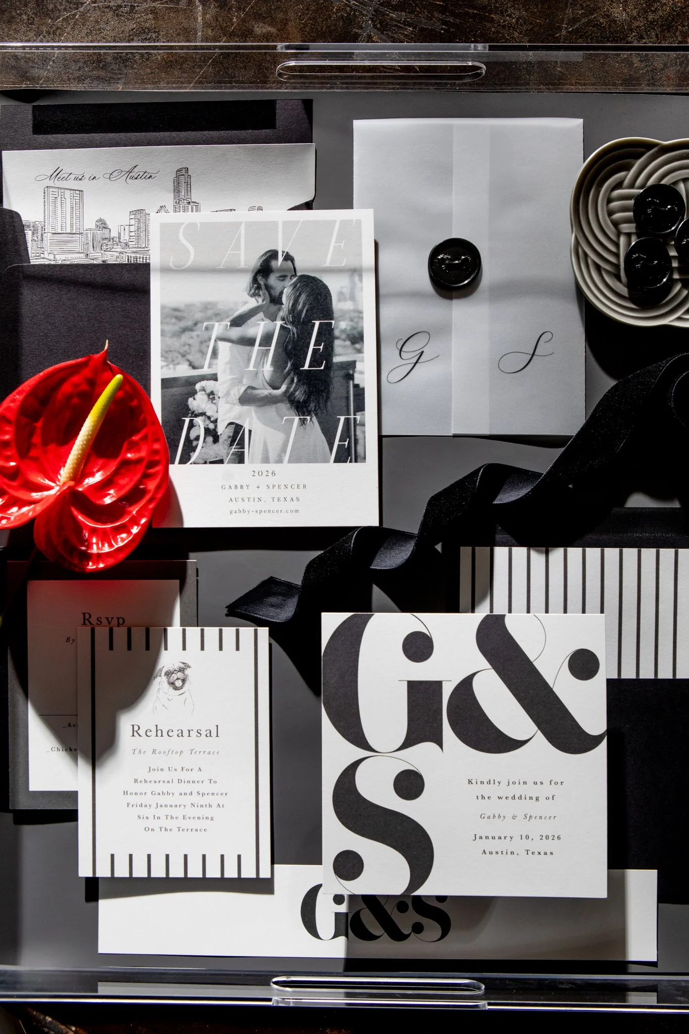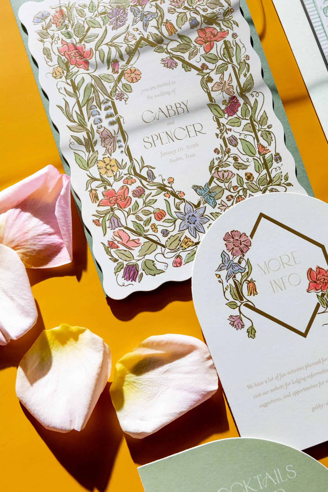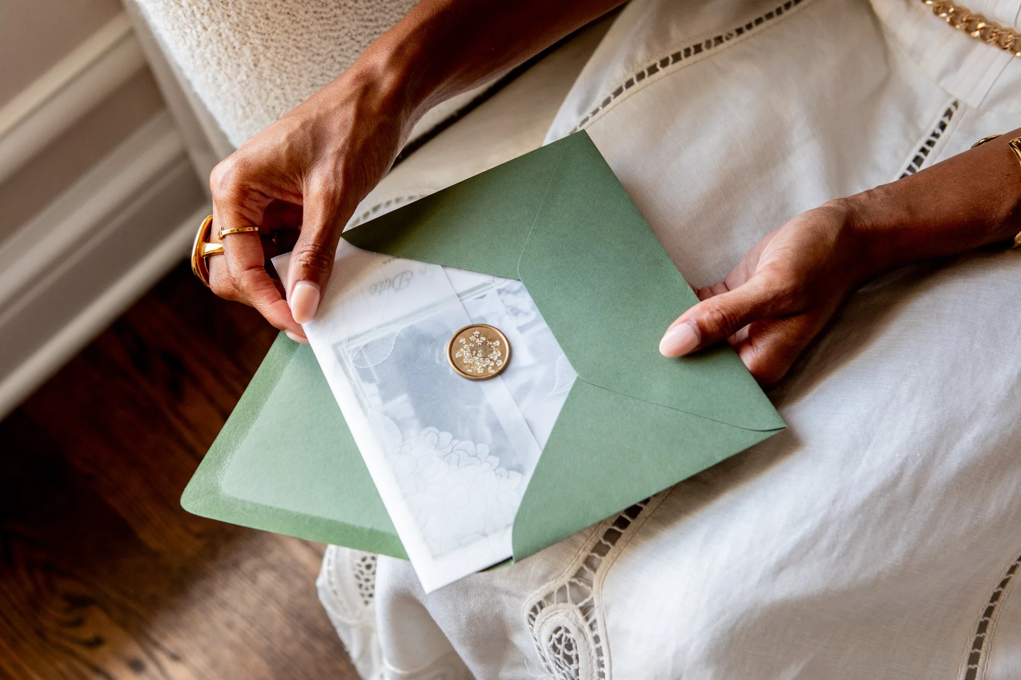 The brief was two worlds in one frame. On one side, Gabby — gold medalist, one of the fastest women alive — in a full bridal gown, moving through the estate's corridors and grounds the way she moves through everything: with complete authority. On the other, Minted's luxury wedding stationery, styled as still life against the estate's textures and light.
